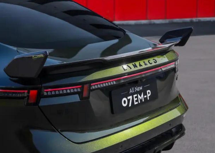 领克07 EM-P碳纤维尾翼版,搭载了干式碳纤维运动尾翼,取材自顶级超跑品牌御用碳布供应商东丽,高速中提供25.9kg下压力,变道、切弯时的操控更加稳健。尾翼上还有DOWNFORCE刻印字符,彰显特殊身份。