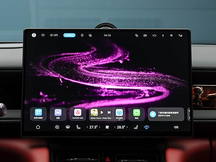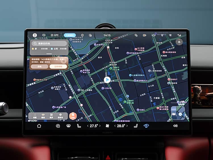 车内提供多种配色方案,采用双色搭配形式,在视觉层面形成分区。中控区域搭载可旋转与伸缩结构的屏幕系统,在不同使用场景下可调整显示角度,适应驾驶与副驾需求。系统层面搭载鸿蒙座舱5.0,在多设备连接、应用生态以及语音交互方面提供支持。