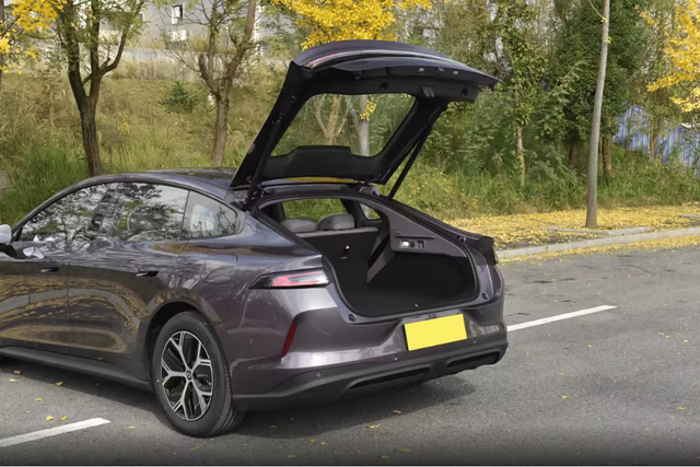 来到车辆尾部,可以看出它用的是掀背车身,后备厢开口比普通三厢车大太多,平时放婴儿车、折叠露营车这种大件,直接塞进去就行,根本不用费劲调整角度,对有娃家庭或者爱露营的人来说太友好了。车门边缘还做了圆润处理,家里有小孩的都懂,孩子跑跳不小心撞到也不怕磕得疼,细节直接拉满。高配车型更狠,车顶自带激光雷达和辅助驾驶小蓝灯,开高速或者堵车的时候,辅助驾驶功能能帮上不少忙,新手也能轻松拿捏。
