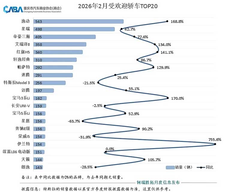 从重庆市场受欢迎轿车TOP20走势上看,能明显感受到终端市场的多样性。季节变化、终端政策、商家策略等营销环节的变化,都会对销量产生一定影响,进而造成部分车型销量同比的大幅度增长。
