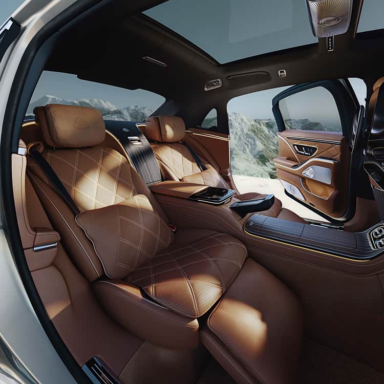 空间方面,新一代迈巴赫S级轿车5484毫米车长与3396毫米轴距继续构建顶级后排体验。后排独立座椅支持19度~43.5度调节,并可形成约1.4米腿部空间,真正实现“移动头等舱”。当然,它的豪华配置则堪称极致:Burmester4D音响(35扬声器+座椅振荡)、主动式氛围灯(199颗LED、64色)、冷藏箱+银质香槟杯、可折叠桌板,这套组合不只是“舒适”,而是将车内空间升级为“私人会客厅”。