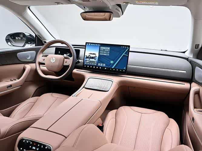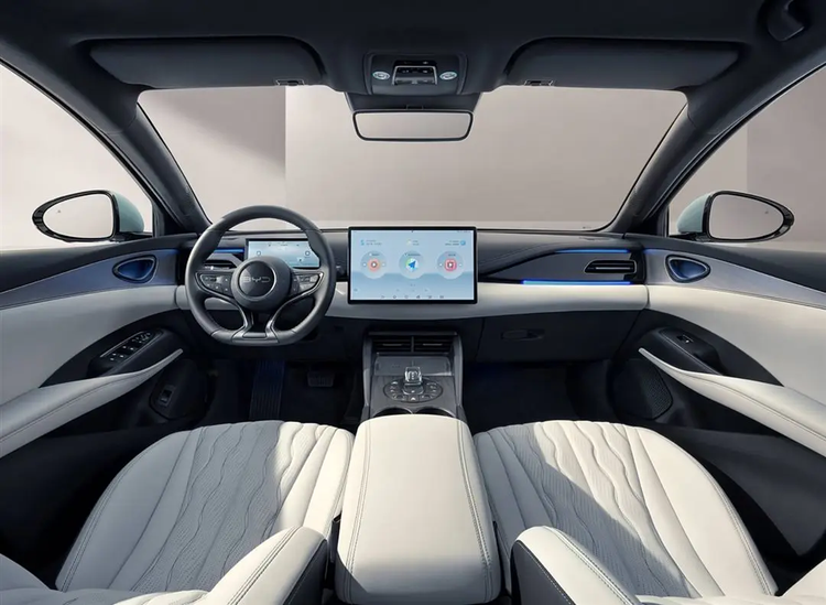 内饰也是简洁设计,都是大屏+方向盘的布局,2026款车型搭载了17.3英寸2.8K中控屏、10.25英寸仪表,相较于2024款车型中控屏尺寸增大了,但取消了10.25英寸的副驾娱乐屏。新车配备高通8295P座舱芯片,支持华为HiCar等手机互联。