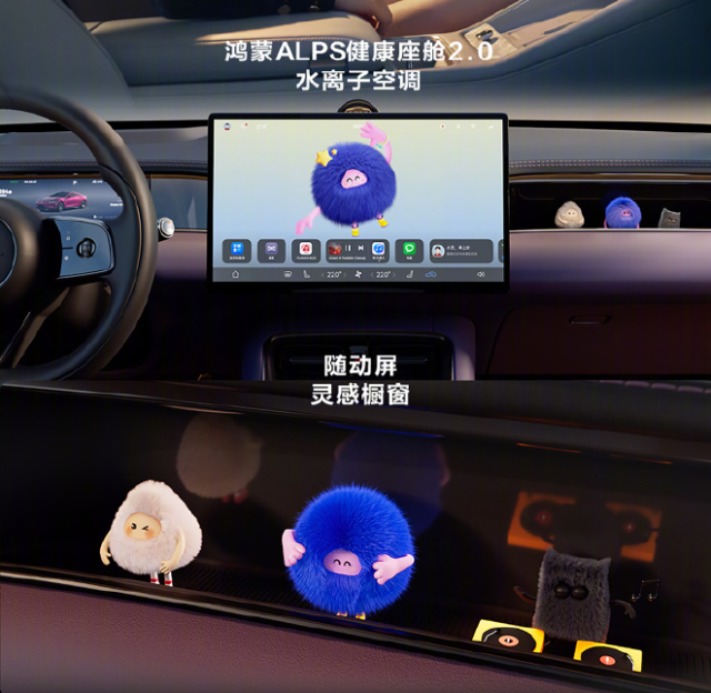 方向盘为三辐多功能方向盘,中控搭载了一块随动屏,支持自动转向、智能迎宾,可在呼出语音助手时转向应答。副驾前方提供了个性化储物空间,采用类似“橱窗”设计,能够放入毛绒玩偶等装饰物品。