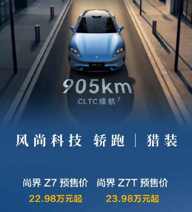 具体来看,尚界Z7和Z7T的预售价为22.98万、23.98万起,两车基于同一平台打造,但在车身的形态和尺寸上有所不同。