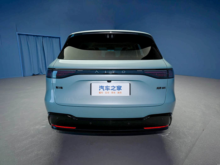 车尾部分,问界M6的设计很有层次感,车顶配备有小尺寸扰流板和高位刹车灯,尾灯组也采用了时下流行的贯穿式设计,内部加入AITO字样,点亮后带来不错的视觉效果。此外,新车还配备了宽大的后包围,并加入熏黑饰板装饰,风格颇为大气。