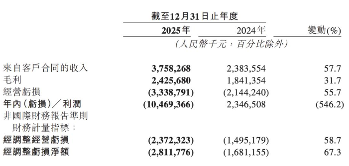 这份财报像一枚硬币的两面,一面是增长,营收同比飙升近58%,核心业务卖得红红火火。另一面则是投入,亏损数字从去年盈利23.47亿的陡然转向了亏损104.69亿。