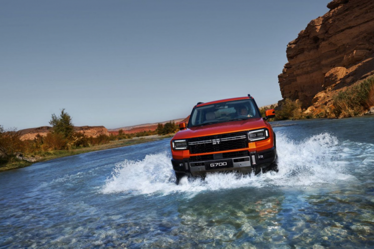 在涉水能力上,纵横G700更是实现了突破,空悬模式下涉水深度可达970mm,核心部件均达到IP68级防水标准,发动机在水面高于顶部20cm的环境中浸泡2小时仍可正常启动,是国标要求的四倍,此前还完成了横渡长江的挑战,成为百年汽车工业史上首款成功横渡长江的越野车。纵横G700水陆两栖的属性让其在水域穿越场景中更具竞争力。