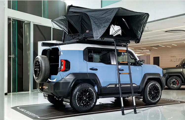 Nature Explorer版本则将重点转向户外露营场景,在越野基础上进一步强化生活属性。车头增加辅助照明系统,提升夜间非铺装道路行驶的视野范围,对于无路灯区域具有实际意义。车顶结构扩展为露营平台,配备遮阳棚等组件,可在驻车状态下形成临时休息空间。相比单纯越野配置,这类结构更关注驻车后的使用体验,强调车辆作为“移动营地”的功能延伸。与此同时,该版本依然保留越野胎配置,在进入露营地点过程中具备一定通过能力。从整体设定来看,这一版本更适用于短至中距离的户外出行,兼顾行驶与停留两种使用状态。