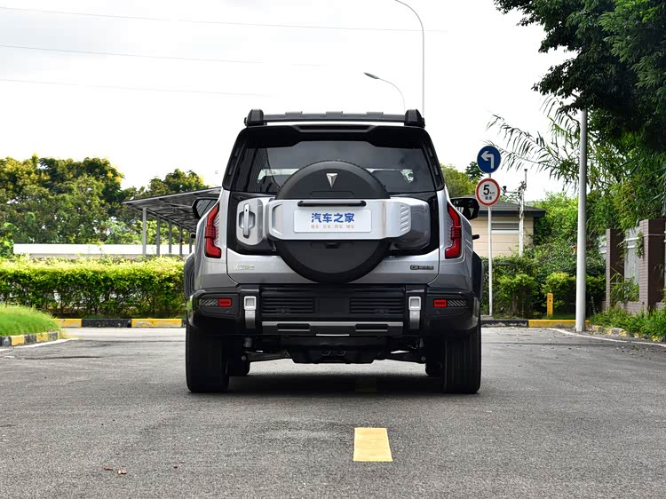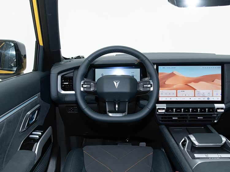 在设计层面,四驱旷野版并未对外观进行结构性调整,整体造型与两驱版本保持一致,依旧采用偏方正的车身轮廓和较高离地间隙设定,强化通过性取向。不同之处在于车身配色方面仅提供“峡谷黑”,这意味着用户在个性化选择上空间有所收窄,但也在一定程度上简化了生产与交付节奏。从整车比例来看,5125mm的车长配合2025mm车宽,使整车横向稳定性更具基础,而1895mm车高与2880mm轴距,则为底盘通过性与车内空间提供支撑。
