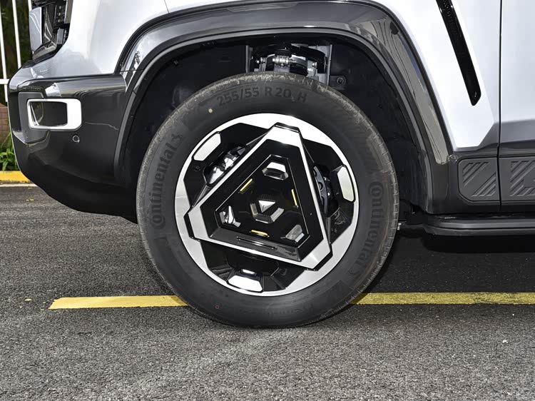 新车匹配规格为255/65 R18的轮胎,这一组合在胎壁厚度与抓地性能之间做出平衡,更适合非铺装路面使用。配合后通风制动盘的加入,在连续制动或长下坡场景中,有助于提升制动系统的热衰减表现。整体来看,这套底盘与轮胎规格并非以极端运动为导向,而是围绕复杂路况稳定性进行设定,更符合“旷野版”的使用场景。