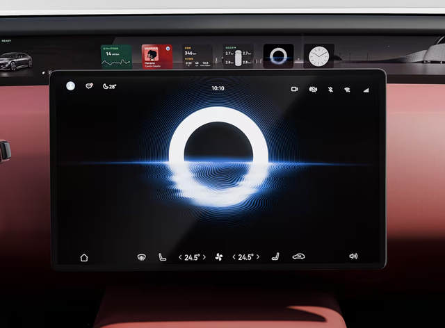 同时,新款阿维塔12全系标配35.4英寸4K全景远端屏、 15.6英寸中控屏、前排双零重力座椅、英国之宝25扬音响等豪华配置,顶棚升级为更柔软细腻的天鹅绒材质,后排则增加AVATR MAG连接点,内饰新增了“岩棕”配色,搭配线性桦木饰板与暖橘色氛围灯,整车的豪华质感相比现款车型有一定提升。