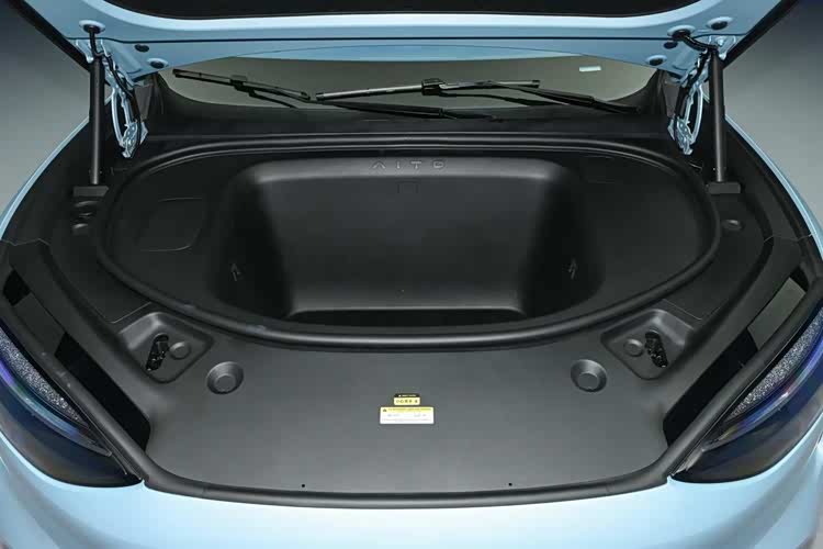此外新款问界M6这次还根据纯电和增程版车型不同,提供了双前脸设计,前者采用网状结构格栅,后者则使用了格子前格栅,进一步增加了车型的区分度。值得一提的是,纯电版车型还配备了电动前备厢设计,内部容积可达202L,并且带有排水孔、照明灯等配置,可以方便储放运输活鱼、夜晚取放东西,进一步提升了实用性。