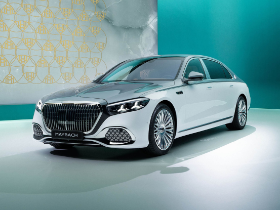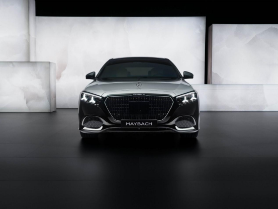 新款迈巴赫S级整体设计与新款的奔驰S级差不多,中网标志性的竖直进气格栅在尺寸上比现款增大约20%,看上去气场更足,轮毂也采用了悬浮车标设计。并且这次新款迈巴赫S级三叉星徽立标、格栅上方的MAYBACH字样、格栅的轮廓还有C柱的迈巴赫logo都可发光,可以说无论白天或者黑夜,都能让人一眼就能让人知道你开的是新款迈巴赫S级!