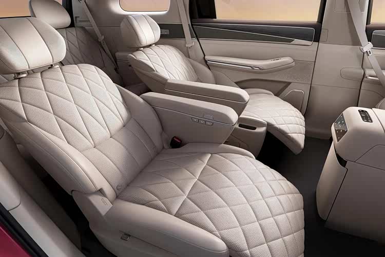 另外,与其它品牌不同,它直接给到7座,“223”布局,既不影响二排主力座位的绝对舒适性,又能满足7人出行的应急需求。座舱配置也是拉满了,二排独立座椅配小桌板,通风加热按摩,有冰箱、吸顶大屏等,包括第三排也无差别给到座椅加热与电动调节。