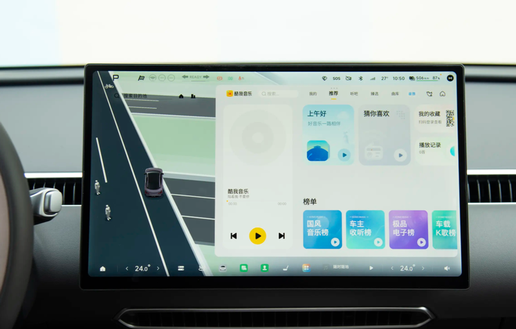内饰的变化其实更值得聊,小鹏MONA M03之前被吐槽最多的是什么?座椅太硬、噪音大,这次直接把前排换成了14点按摩座椅,加长坐垫并且变得更软了,后排没有重点说,估计要等上市亲自去体验一下,还有那个主动降噪和前门双层夹胶玻璃,这个配置在这个价位的车里还是比较良心了。车机芯片从8155换成了MT8676,内存干到了24G,天玑OS 6.0的系统,流畅度理论上会有提升,无仪表盘的设计还是保留了下来,这个我始终觉得有点激进,而且没有HUD,还是会让一部分传统用户有点不适应。