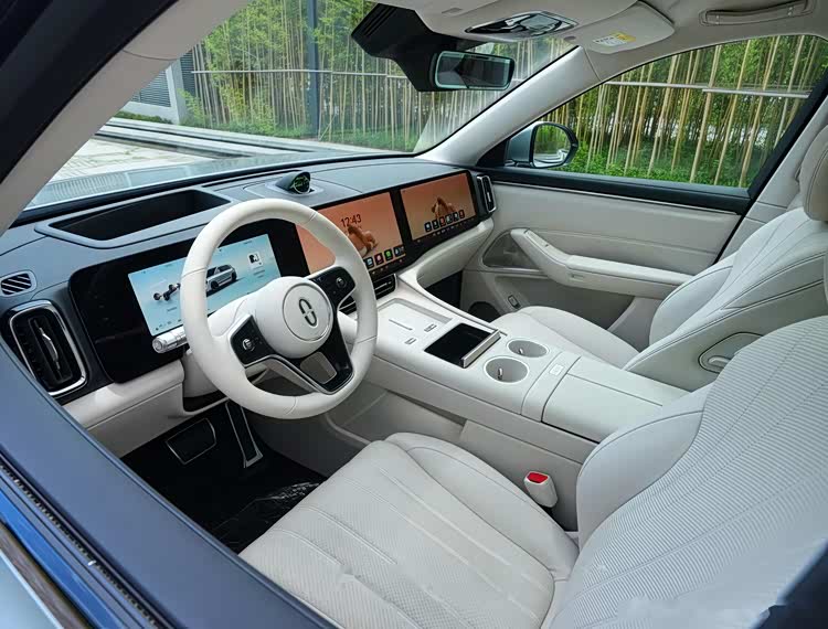 内饰布局和智能车机方面,新款问界 M8 采用三联屏的布局,由 12.3 英寸液晶仪表、15.6 英寸中控屏和 16 英寸副驾娱乐屏组合,并配有 68 英寸 HUD 抬头显示系统,搭载华为最新鸿蒙座舱,已接入 DeepSeek 应用、支持六区域语音识别唤醒、多指飞屏操控、应用商店、车内生物监测系统、车载 KTV、手机 APP 远程控制等功能。
