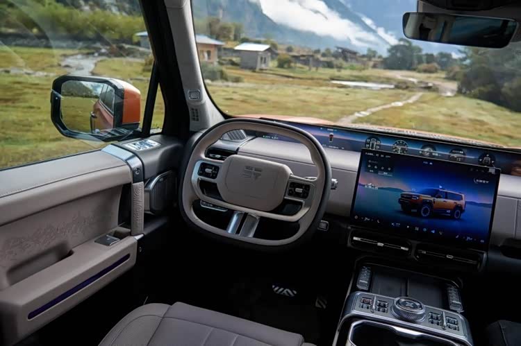 全系标配智能三把差速锁,是其硬核脱困能力的核心保障,无论是交叉轴、炮弹坑还是单侧车轮悬空,都能精准分配扭矩,顺利完成脱困,即便越野新手也能轻松驾驭复杂路况。