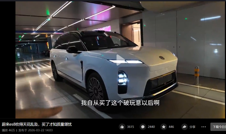特别提醒:以下基于该车主发布的公开视频内容,整理其反馈的具体问题,仅为消费者用车参考,不代表该车型普遍质量情况,相关问题尚未经蔚来官方核实,蔚来品牌对其产品质量承担最终保障责任。