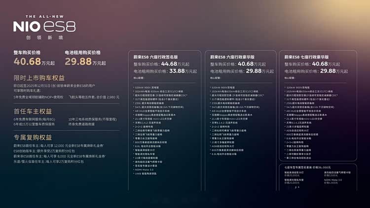毕竟,蔚来全新ES8上市时,其900V高压架构、智能底盘、静谧座舱等均是核心卖点。