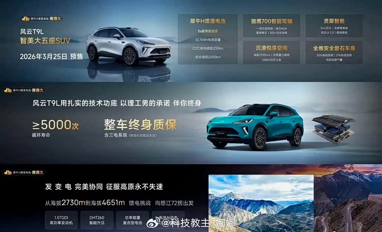 从打破合资垄断的国民好车,到引领新能源发展的品牌标杆,风云品牌的蜕变是奇瑞深耕新能源领域的缩影,更是中国汽车品牌向上的体现。风云T9L13.99万起的预售价格,不仅为20万级家用SUV市场带来高价值选择,更以全维产品力回答了“新时代中国家庭需要什么样的SUV”的行业命题。未来,风云品牌将以“乘风而上,造时代新风云”为航向,以技术与豪华平权为核心,为中国家庭打造世界级新能源出行体验,书写中国汽车品牌从技术到文化引领的全新篇章。
