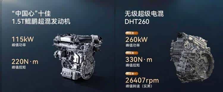 动力这块,风云T9L用上了鲲鹏超能电混CDM6.0系统。1.5T混动专用发动机,热效率45.79%,拿过“中国心”十佳。配上DHT260混动变速箱,系统综合功率550kW,零百加速5秒级。一台家用SUV做到这个加速,日常使用完全是过剩的。但过剩的好处是,高速超车、匝道汇入,油门踩下去那一下,心里特别有底。