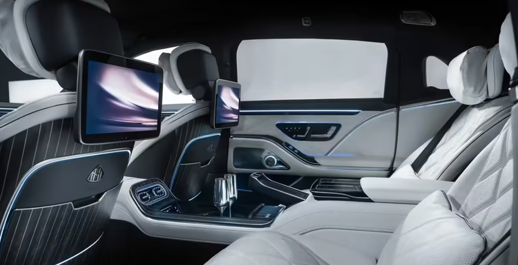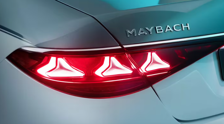 新车前脸换上了尺寸更大的进气格栅,迈巴赫标识和外圈装饰都能点亮,引擎盖上的三叉星徽标也带发光功能。如果你觉得这还不够,后挡风玻璃上还藏着另一组迈巴赫标识。配合镀铬引擎盖棱线,整个车头修长又有气势。