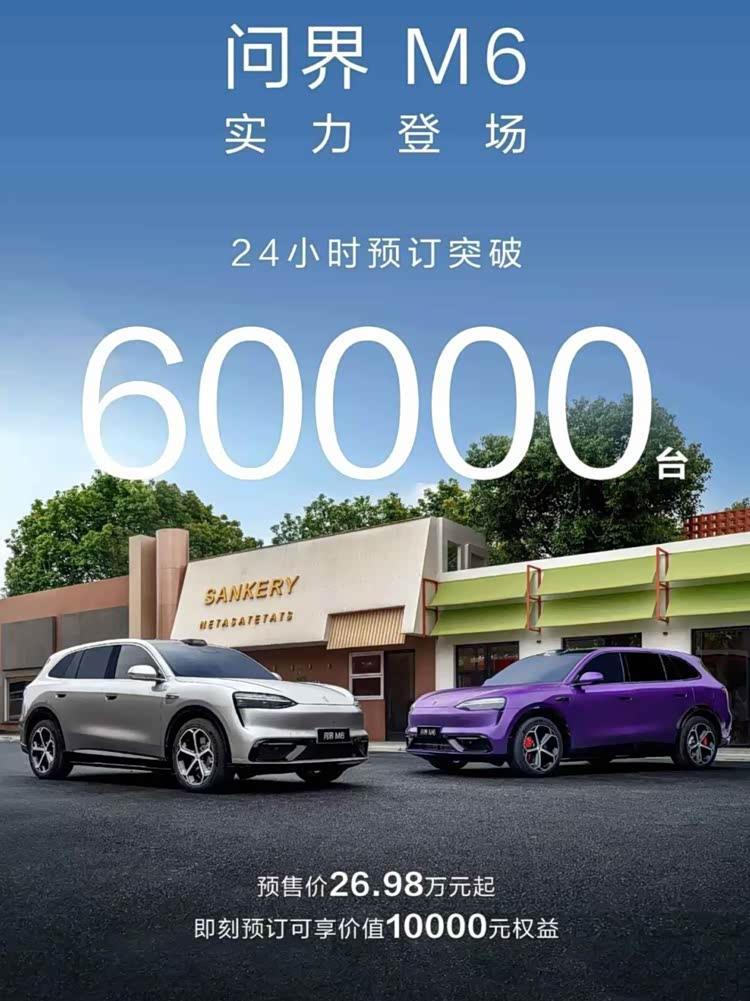 重点来了,问界M6福利拉满!新车已开启预售,24小时订单突破6万台,预售价区间26.98-30.98万元,可享至高10000元购车权益,包括2000元意向金抵5000元尾款、价值5000元冷暖箱免费升级、价值2000元电吸门免费升级,性价比直接拉满。各位老铁,您怎么看呢?欢迎回复评论!
