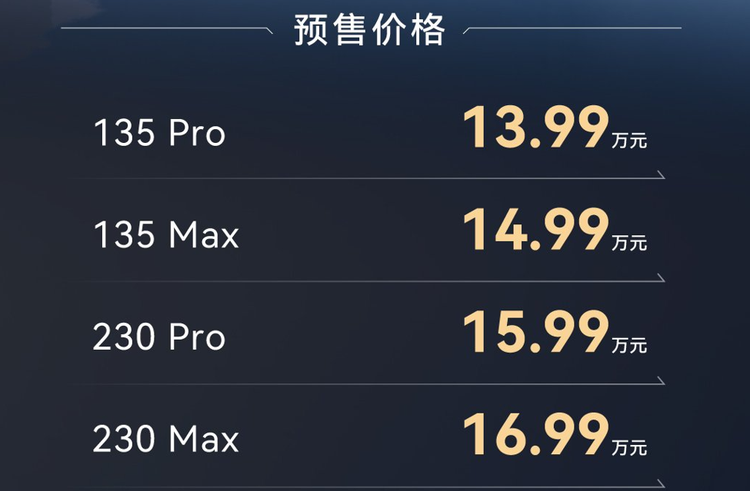 135 Max(14.99万)与 230 Max(16.99万):高配版本的核心差异在于智驾体验。