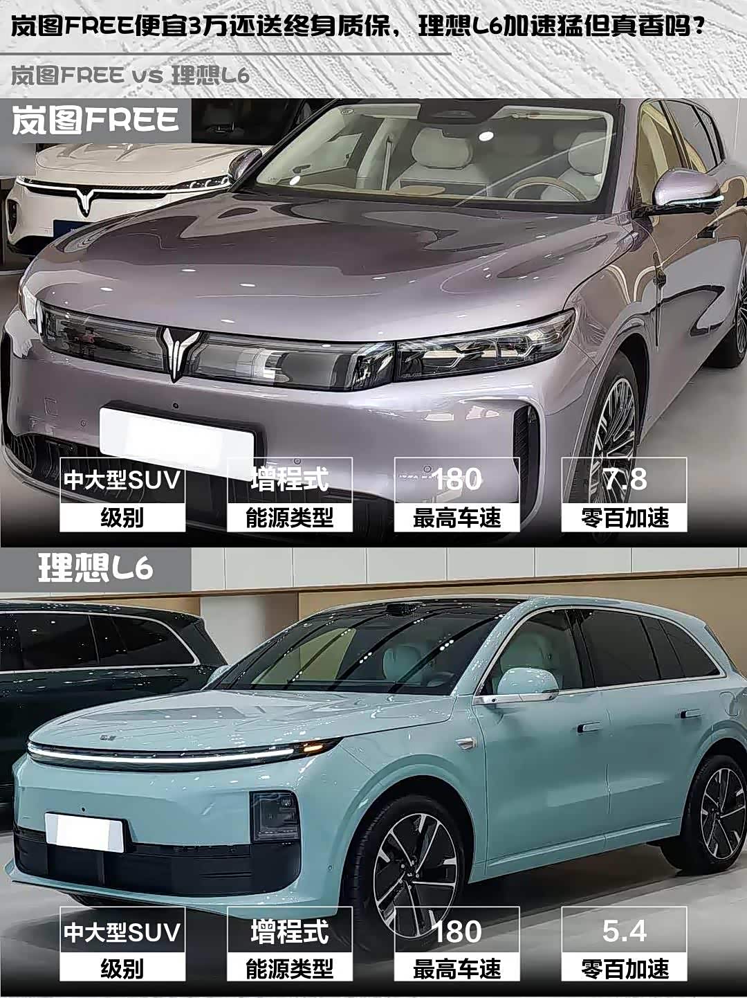 岚图FREE后驱版7.8秒加速够用,重点是CLTC纯电318km续航实测能跑280km+,市区通勤基本不用油。理想L6双电机四驱5.4秒加速更猛,但212km纯电续航偏短,冬天可能得两天一充。长途党注意:岚图综合续航1400km+,理想标称1390km,实际差距不大。