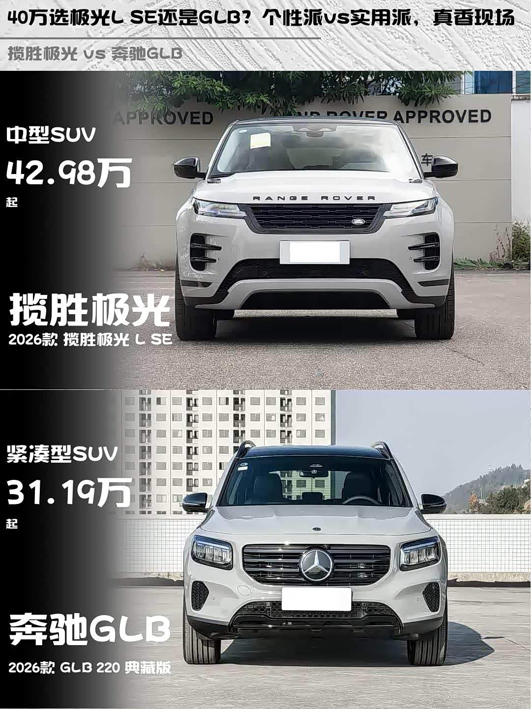 最近身边好几个朋友都在纠结选车,40万预算到底该选英伦范儿的2026款 揽胜极光(参数|询价)L SE,还是德系豪华的2026款奔驰GLB 220典藏版?作为深度体验过两台车的车主,今天就从真实用车场景聊聊这对欢喜冤家!🔥