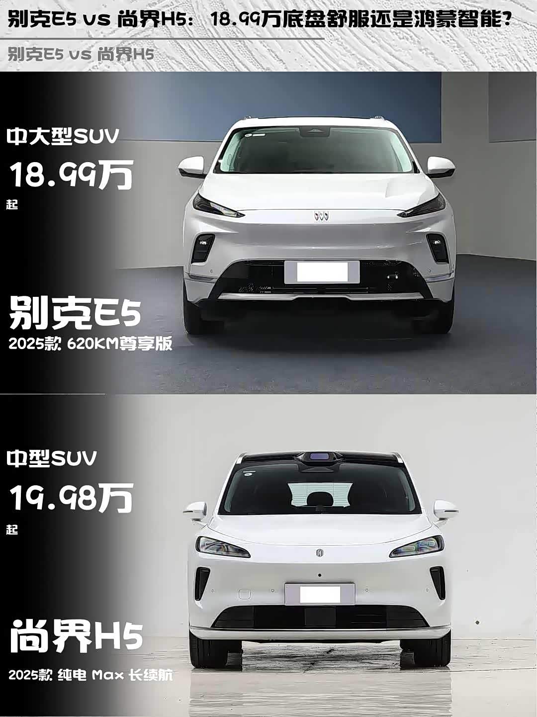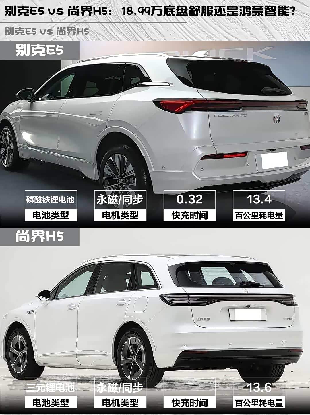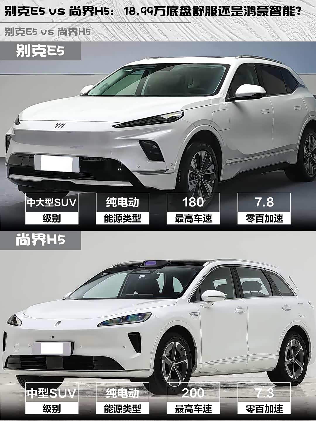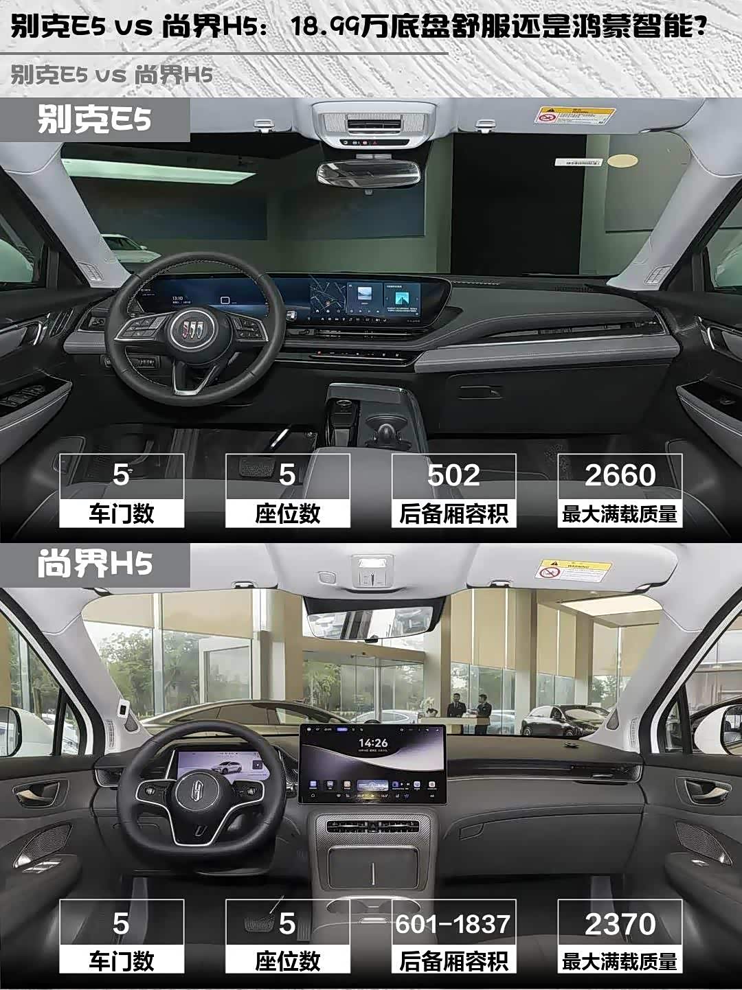 别克E5 vs 尚界H5:18.99万底盘舒服还是鸿蒙智能?