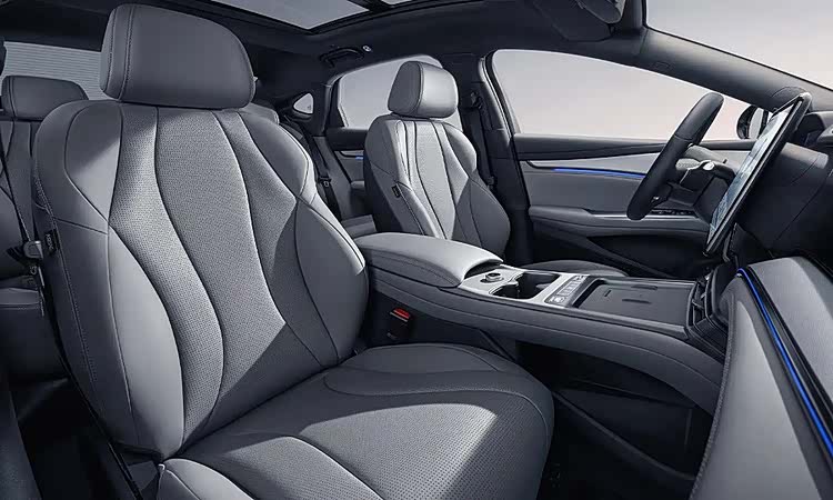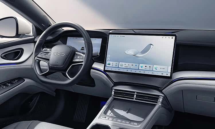 内饰方面,新车保留了10.25英寸全液晶仪表和15.6英寸自适应旋转悬浮Pad的组合,并换装了全新的四辐方向盘和怀挡式换挡机构,释放了更多中央通道空间,内饰用料保持了比亚迪一贯的高水准,属于这个价位内比较有优势的表现。