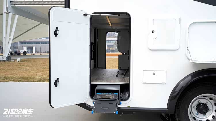 同时,尾部设计贯通式储物仓,露营装备、出行行李都能妥善收纳。车门联动踏步开启后,室内两个台阶还可放置鞋子,细节处的人性化设计,让上下车更省心。