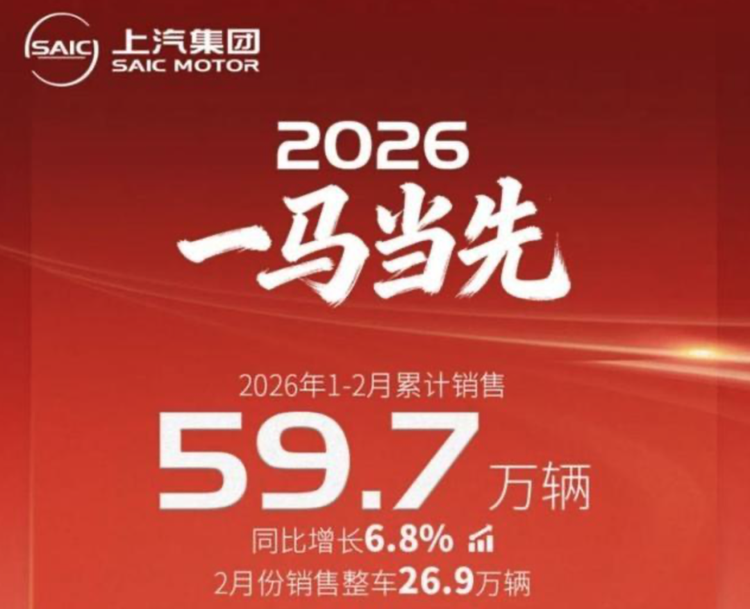 技术与产品的双重爆发,最终让上汽在残酷的市场上收获了最直接的信任票。在2026年的开局之战中,上汽集团1-2月累计销售近60万辆,同比增长6.8%,批发与零售规模均大幅领跑国内汽车行业。
