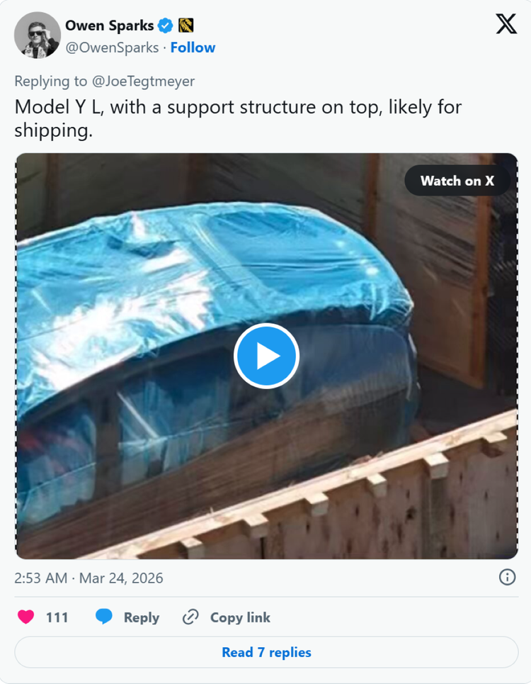 车东西3月25日消息,据外媒Teslarati披露,近日,特斯拉美国得克萨斯州超级工厂内出现一辆伪装测试车。外界推测,该车疑似为目前中国市场专属的长轴距版Model Y(Model Y L)。