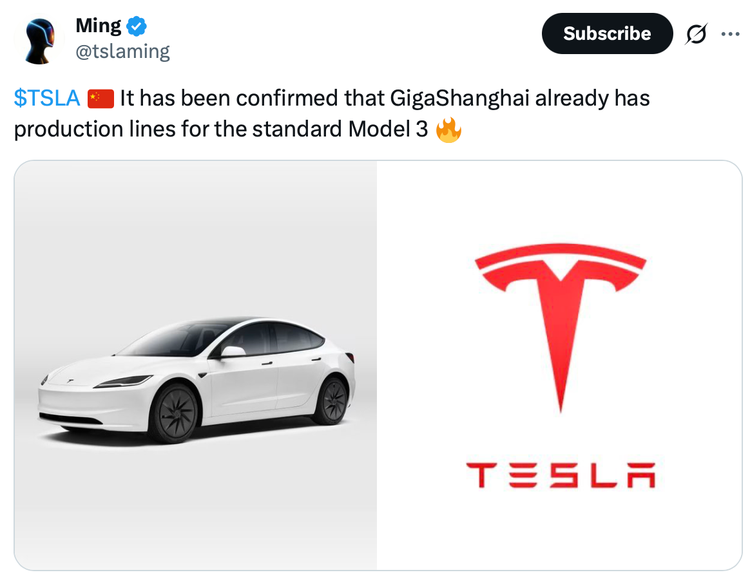 据国外社交媒体@tslaming透露,特斯拉正准备把这款更低门槛的Model 3引入国内市场,且上海超级工厂相关生产线已经就位。
