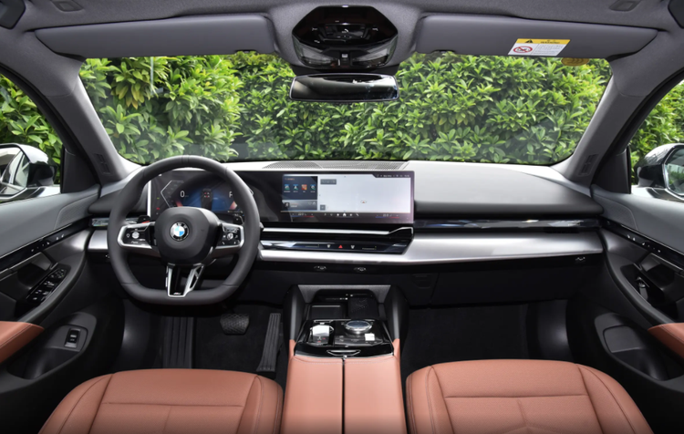 内饰用料扎实,大面积采用Nappa真皮、软性搪塑材质与金属饰板包裹,触感细腻,接缝工艺严谨,但部分低配车型采用的合成皮质座椅,质感与透气性略逊于高配的Nappa真皮。此外,2026款宝马5系的核心升级集中在科技与舒适配置上,同时保留了宝马一贯的匠心工艺。中控台采用12.3英寸全液晶仪表+14.9英寸中控屏组成的悬浮式双联屏,屏幕向驾驶员倾斜,搭配iDrive物理旋钮,兼顾科技感与实用性,实测屏幕响应速度流畅,搭载的高通骁龙8155P芯片让多任务操作无卡顿,语音识别准确率超95%,可控制导航、空调等12类功能。