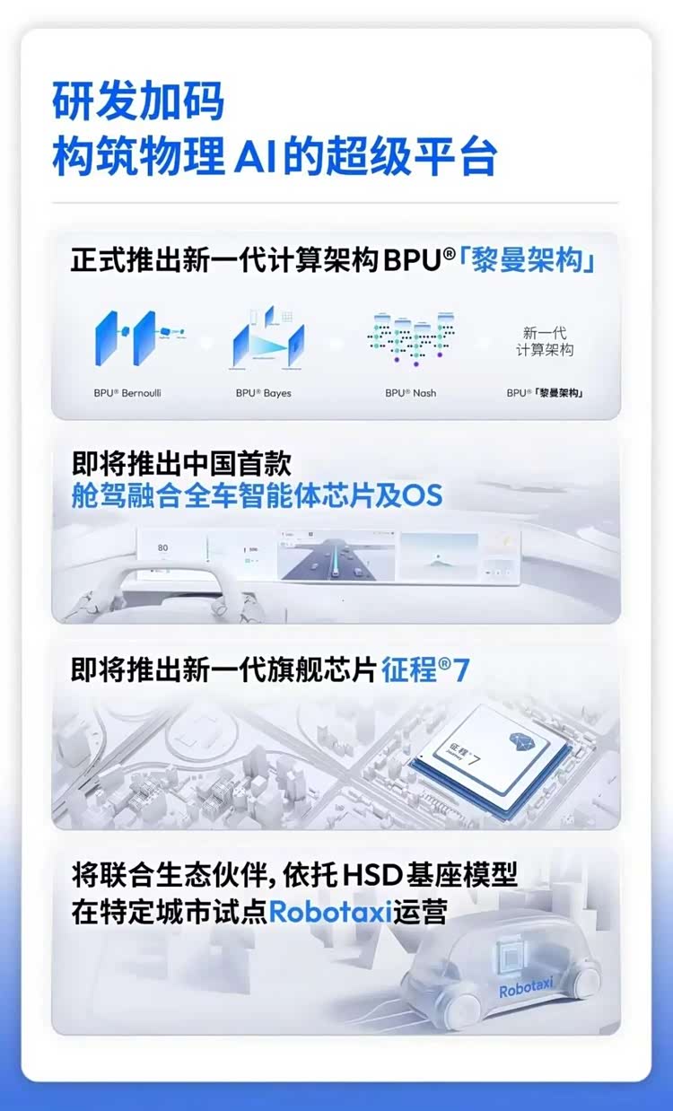 在增收的同时,地平线仍然加码研发。BPU架构从伯努利到纳什再到黎曼,计算性能提升超1000倍,新一代旗舰芯片征程7蓄势待发,舱驾融合全车智能体芯片和智能体操作系统即将推出,地平线一直在帮助合作伙伴进一步降低成本、提升体验的路上。