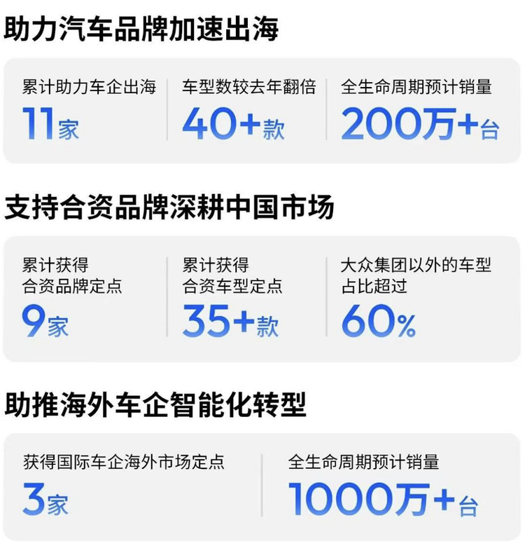 更重要的是生态能力。总出货量中,超过95%是通过生态合作伙伴共同交付完成。这不仅是卖芯片,更是在输出一套完整的智驾“操作系统”。