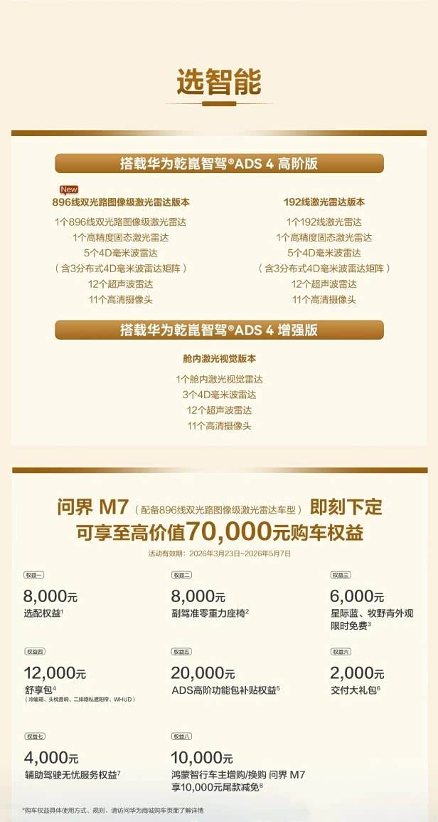 2026年5月7日前下定问界M7,可享副驾零重力座椅、舒享包等多重购车福利。若想挑选品质、安全、智能兼备的家庭座驾,可前往线下门店实地体验,把握福利时机轻松购车。