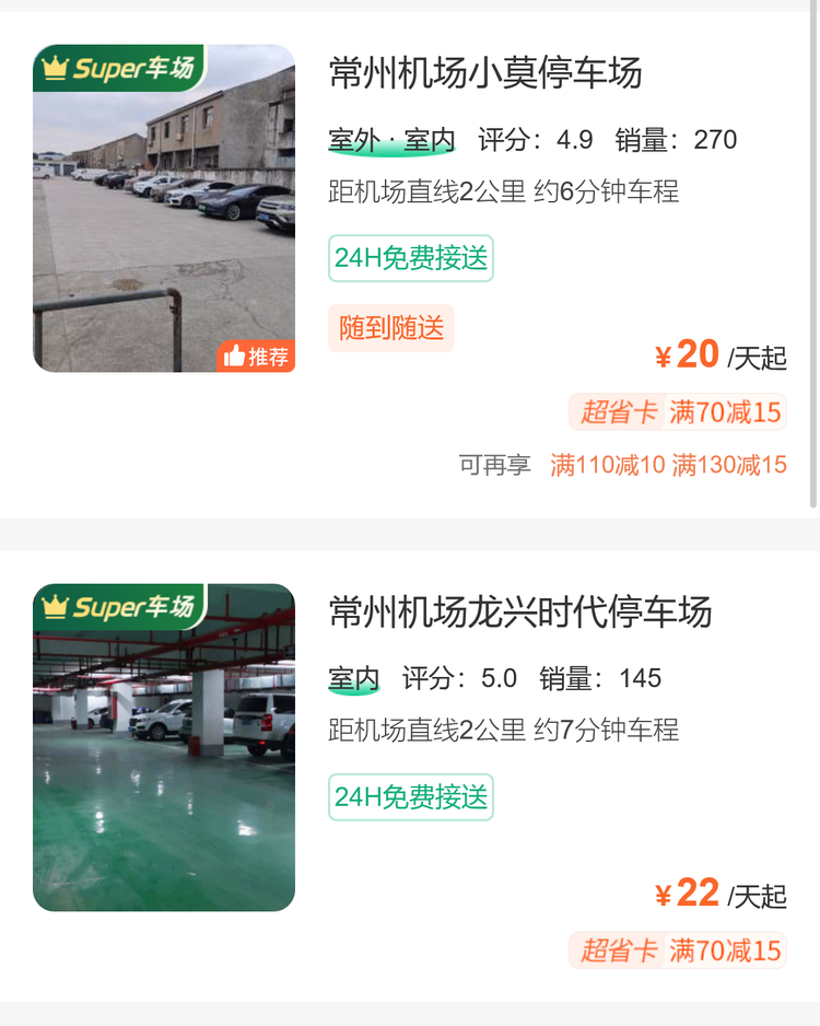 对于长停的旅客,通常是要自己要外出,停车时间相对较长,一般可以选择机场配套的停车场,不过这里通常收费较贵,备用的方案是附近的停车场,一天的收费在19到22左右,同时停车场会有免费车接送,具体有哪些停车场可以用淘车位小程序来查看和预订。