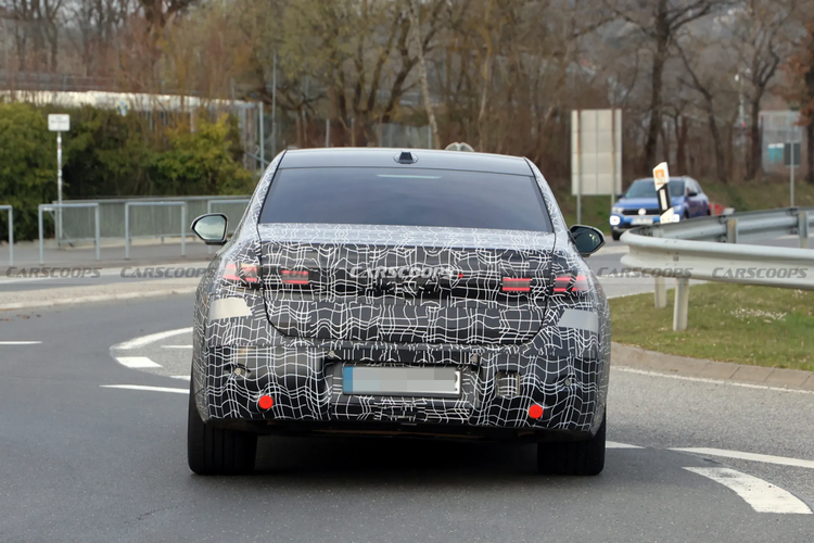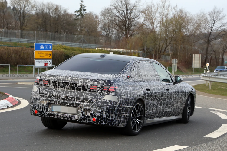 从预告图和谍照图看,2027款宝马7系采用了分体式大灯,细长的日间行车灯保留家族辨识度,宽度有所增加且内部灯组图形更新,搭配全新设计的方形大灯,与两侧攻击性更强的进气口无缝衔接。整个车头看起来比现款更具攻击性和表现力,少了几分稳重,多了几分前卫。下方的进气口和前唇也经过了重新设计,进一步强化了运动感。