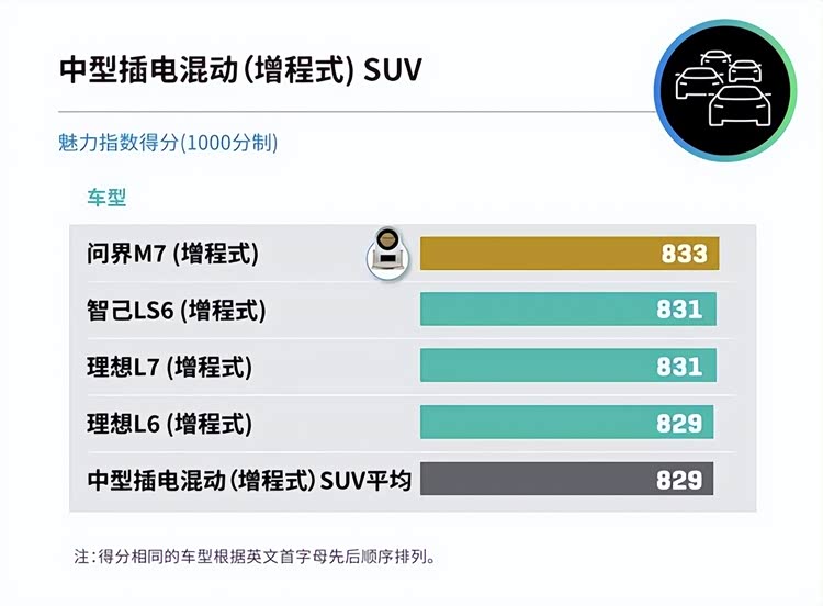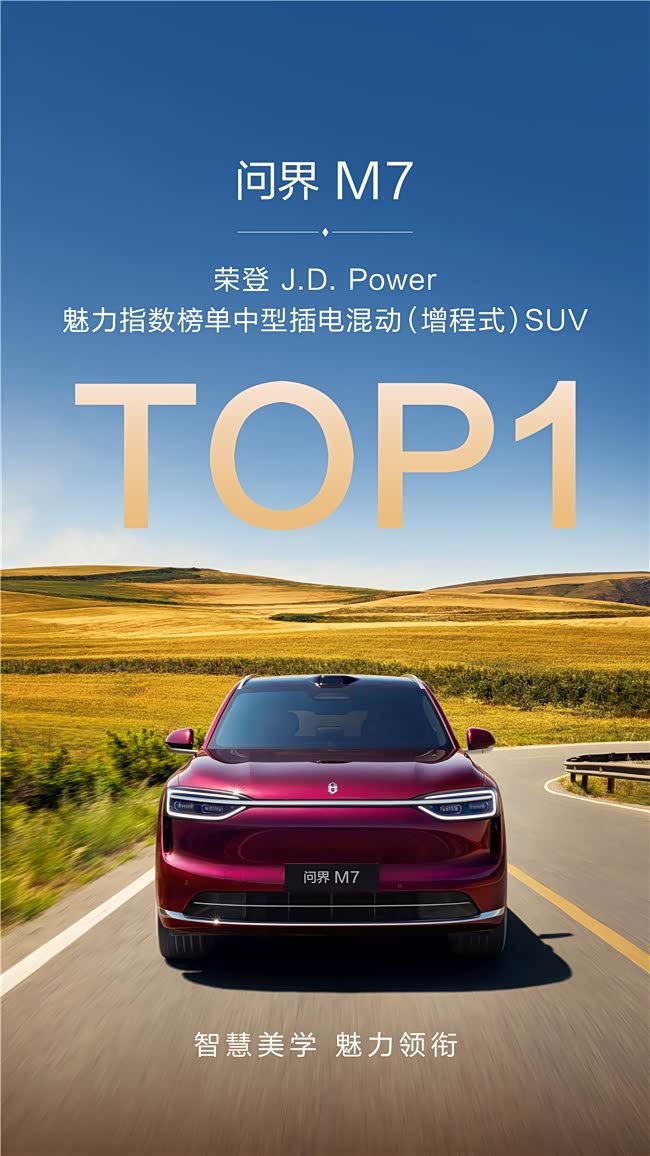 当一款车型被市场冠以“国民SUV”的称号,它所承载的便不仅是产品参数,更是万千家庭的出行信任。在3月26日J.D. Power(君迪)发布的2026中国新能源汽车产品魅力指数研究报告中,问界M7凭借833分(1000分制)的优异成绩,一举摘得“中型插电混动(增程式)SUV”魅力指数的桂冠。这不仅仅是一个奖项,更是对问界M7在产品力与用户情感共鸣上双重领先的权威背书。