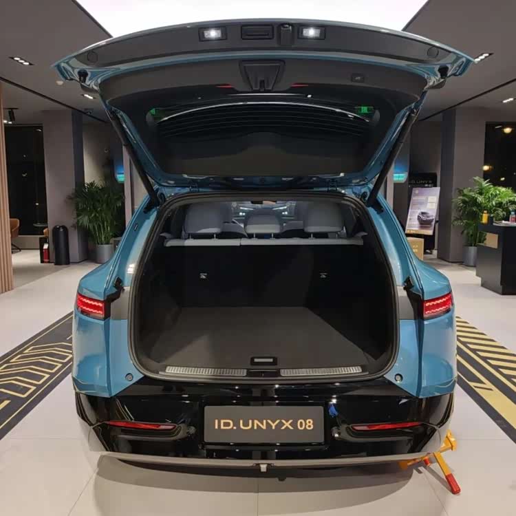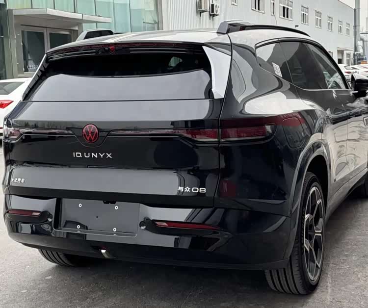 车尾尾灯与车头日间行车灯看起来比较类似,中央的红色可发光大众尾标与下侧的“ID.UNYX”金色标识相呼应。下方扩散器造型同样进行了熏黑处理,尺寸不小。