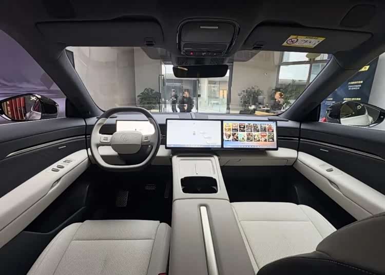 坐进车内,搭载10.25英寸全液晶仪表,双15英寸2.4K中控+副驾双联屏,副驾屏幕带有防窥功能,全系搭载高通骁龙8295P座舱芯片,车内大面积采用了亲肤面料软质包裹,提供隐夜黑、暖居米、冰晶蓝三种内饰配色,还可选择Nappa真皮与麂皮绒顶棚。这在当前不少消费者呼吁回归实体按键的背景下,算是个比较大胆的选择。