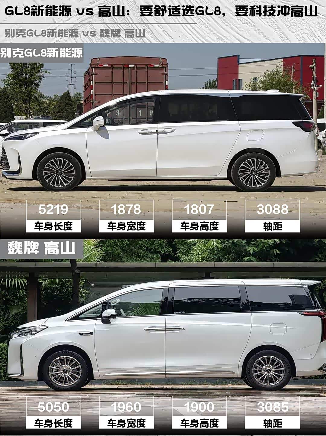 先说结论:要商务舒适选GL8,要科技性能冲高山!
