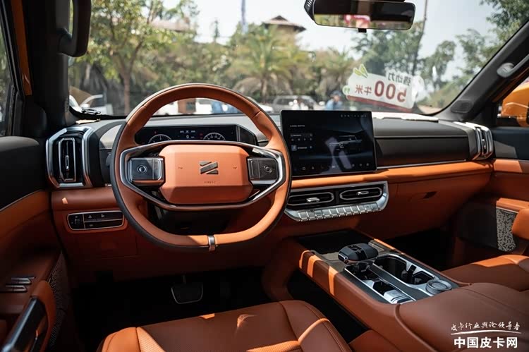 该车搭载博格华纳智能四驱系统、MLock锁止功能与伊顿差速锁,支持多种驾驶模式切换,拖拽能力超3吨,接近角32°、离去角26°、离地间隙235mm,可应对高强度越野场景。同时配备14.6英寸中控屏与越野信息显示系统,兼顾越野性能与日常使用舒适性。