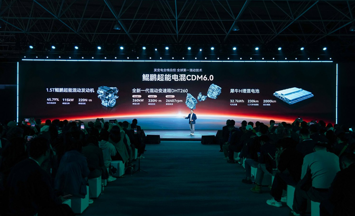 以风云T9L所搭载的鲲鹏超能电混CDM6.0系统为例,荣获“中国心”十佳发动机殊荣的1.5T鲲鹏超混专用发动机,携手实测峰值转速达26407rpm、位居同级首位的全新一代DHT260混动变速箱,再加上可达成综合能耗缩减15%、制动干预降幅80%的鲲鹏AI能量管理系统,这套实力强劲的全栈自研混动系统,更是呈现出一系列令人惊叹的亮眼数据。