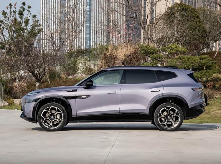 车身侧面线条流畅柔和,海浪曲面取代生硬棱角,贯穿式腰线从车头金标延伸至车尾,搭配隐藏式门把手与翼型后视镜,进一步降低风阻,21英寸星芒轮毂造型精致,搭配可选撞色装饰,提升个性化质感。溜背式车顶线条顺滑过渡,兼顾后排头部空间与轿跑动感,车尾配备狭长贯穿式LED尾灯,中央集成可发光品牌LOGO,隐藏式排气与扩散器结构,进一步强化运动气场。