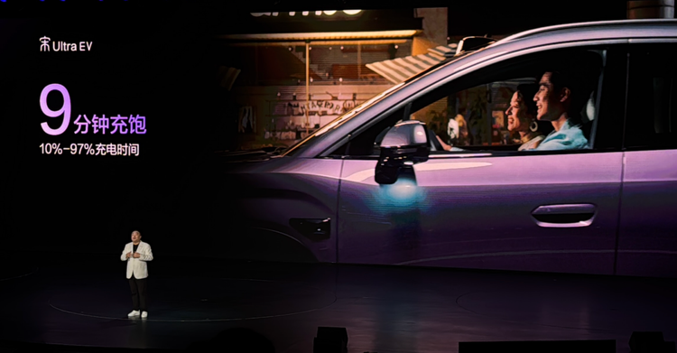 比亚迪宋Ultra EV最大的亮点是全系搭载比亚迪第二代刀片电池,标配闪充技术,10%-70%充电仅需5分钟,10%-97%充电仅需9分钟,在零下30度的环境中,20%-97%充电只需多用3分钟。对于非营运车辆,比亚迪赠送1年免费闪充权益,包含电费和服务费,这意味着用车第一年,车辆用电可以做到零花费。